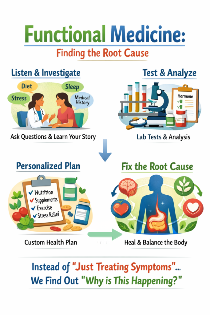 It focuses on finding and fixing the root cause of your chronic disease — not just treating the symptoms.